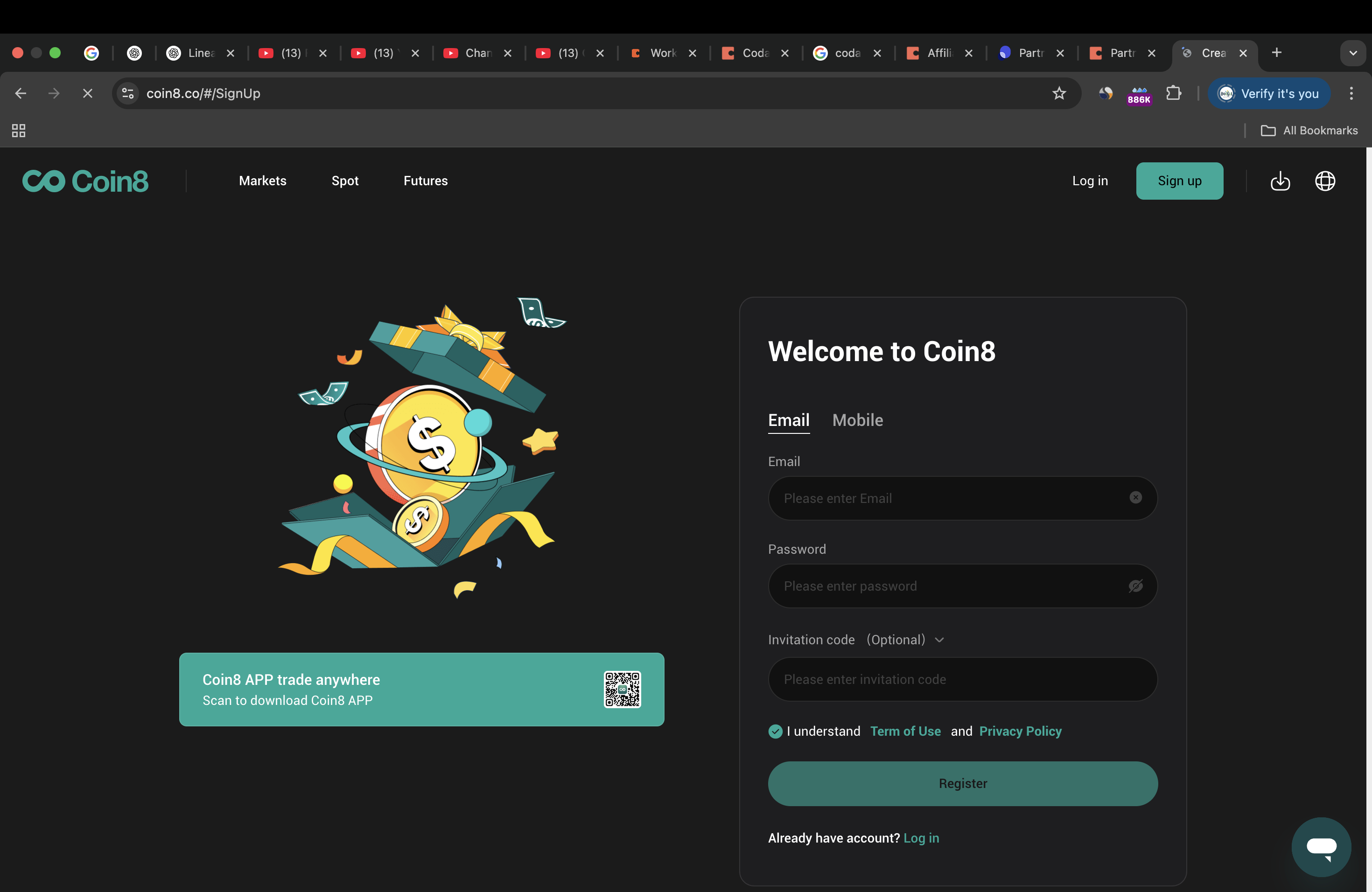 1️⃣ Sign Up – Visit the Coin8 website and create your account.